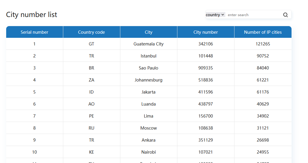 国家和城市列表: (看这个)https://doveip.com/index.php?s=/documentation/city.html&lang=en-us