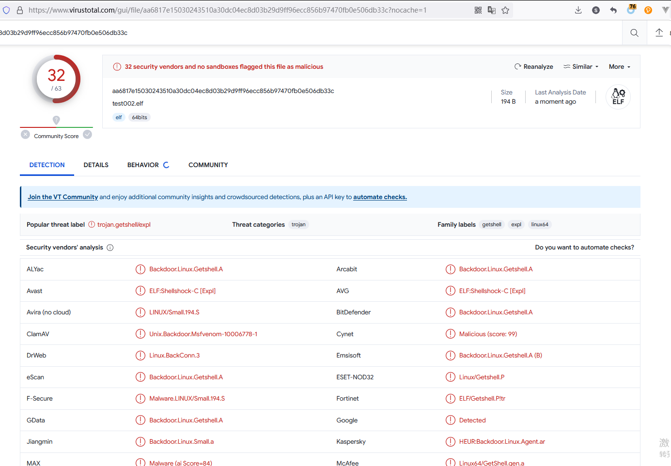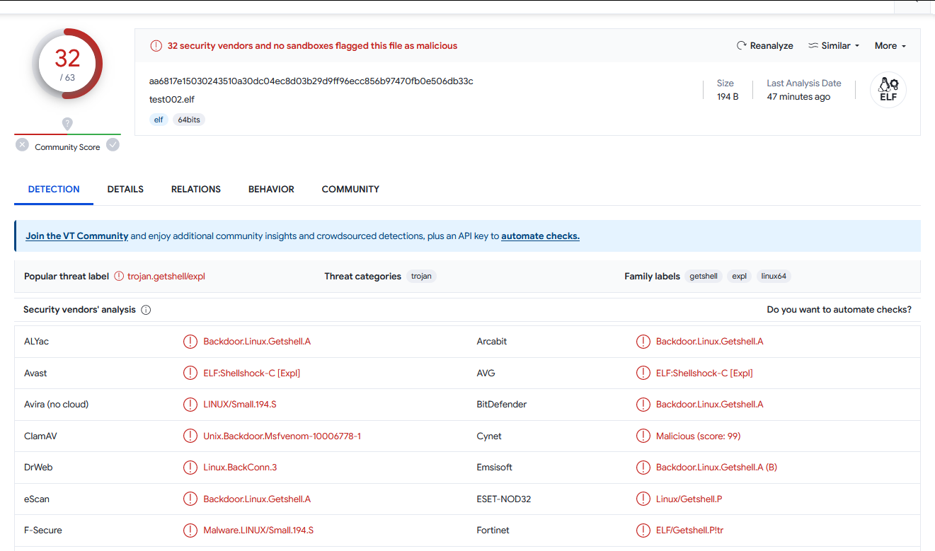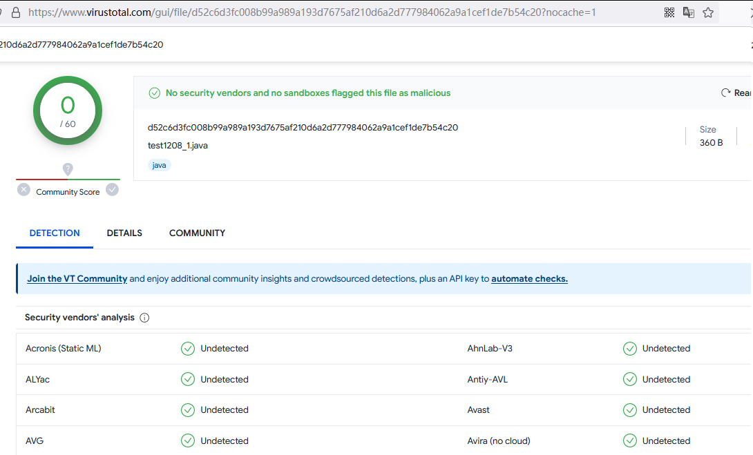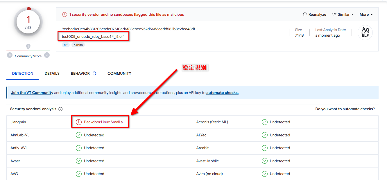 今天生成了一个 reverse shell 的 文件,结果发现完全不免杀: