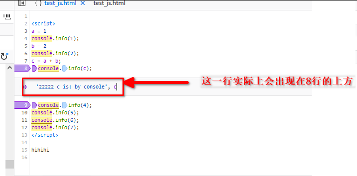 2. 添加记录的意思是, 输入 console.info('xxx') 中的 xxx的内容, 所以你可以输的内容是: "c is:", c